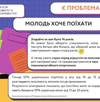 Чи залишиться молодь в Україні? Чи знайде можливості та мотивацію? Чи зможе самореалізуватися? Команда ГО “Простір розвитку та можливостей” вірить, що так! В нашій країні є все для того, щоб молодь могла розвиватися і будувати успішне майбутнє.